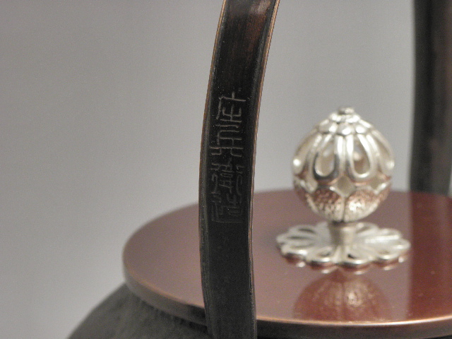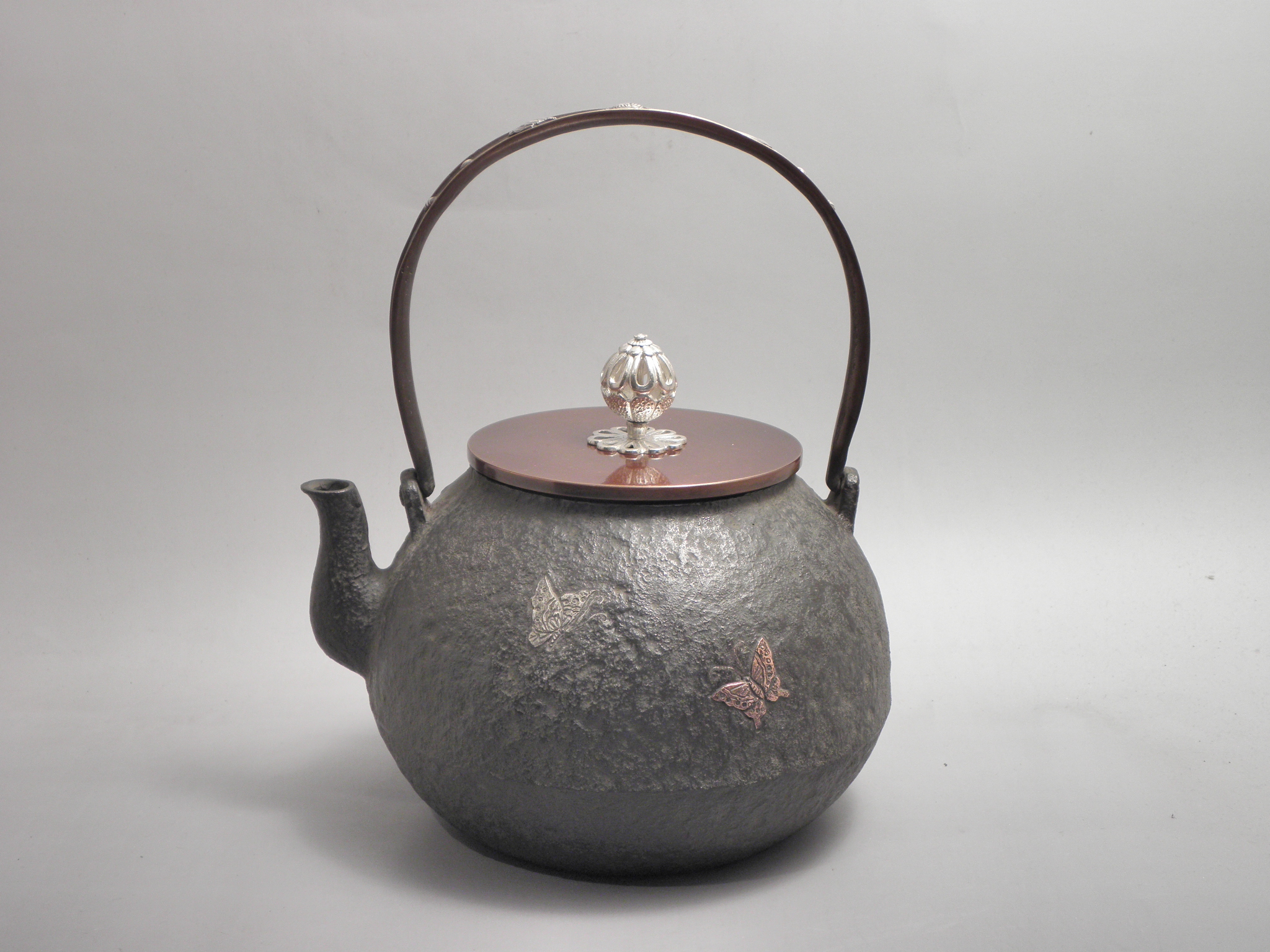 Iron Kettle B – 蝋型鉄瓶 鞠に結熨斗 金銀象嵌